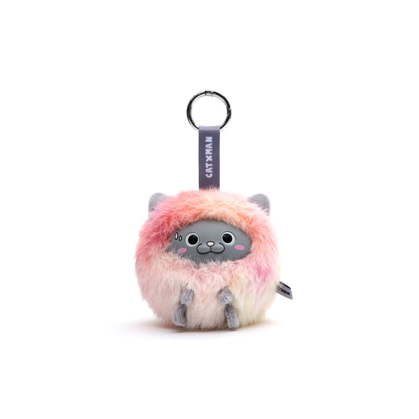 CATXMAN FURRY BALL SHAPE PLUSH KEYCHAIN (PINK MULTI)